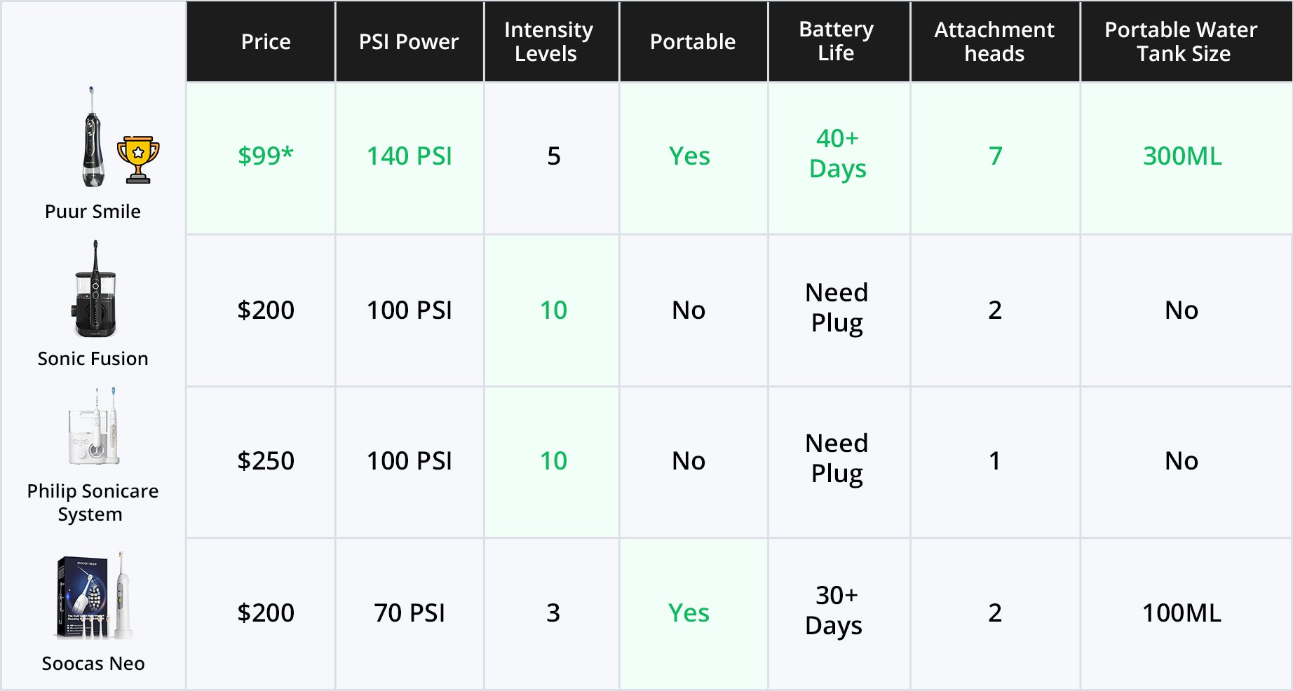 By far, everyone had the best results with the Puur Smile Water Flosser